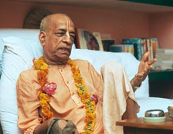 Prabhupáda: Díky nám jsou bhágjaván. Dáváme jim službu, tak se mohou stát bhágjaván. Stojí nás to galony krve, abychom z nich udělali bhágjáván. To je oběť oddaných. Tak jako ty jsi třeba chudý. Přijde nějaký bohatý člověk a řekne, "Tak fajn, vezmi si ode mě milion dolarů." Pak budeš okamžitě bohatý. Oddaní se proto takto obětují. Tak jako Vásudéva Datta. Požádal Čaitanju Maháprabhua, "Můj Pane, Ty jsi sem přišel. Vezmi všechny tyto nešťastné lidi zpátky domů k Bohu. Jestli si myslíš, že jsou tak neslavní, že je nemůžeš vzít, pak dej všechny jejich hříchy na mě. Já budu trpět. Prosím vezmi je pryč." To je Vaišnava. Obětuje všechno pro tyto nešťastné darebáky. Proto se stává Kršnovi velice drahým. Kršna říká, na ča tasmán manušjášu (Bg. 18.69). Ti, kteří obětují všechno, aby se rozdali, aby těmto darebákům přinesli štěstí, se stávají okamžitě velice drahými Kršnovi. Tak jako když dá nějaký boháč peníze na veřejně prospěšné věci, vláda si ho okamžitě všimne. Dostane nějaký titul. Proč? Protože dal své vlastnictví pro prospěch veřejnosti. Podobně oddaní rozdávají své vlastnictví těmto nešťastným lidem. Proto jsou hned rozpoznáni. Takový je tento proces. Ale oddaný nechce žádné uznání, avšak ví, že "Můj Pán chce, aby šel tento darebák zpátky domů k Bohu. Zkusím se tedy co nejvíce snažit." Zná mysl svého pána. Proč by ten jinak přicházel a přesvědčoval nás, sarva-dhramám paritradžja mám ekam šaranam vradža (Bg. 18.66). Nemusí to dělat, ale chce toto, "Tito darebáci trpí v těchto hmotných podmínkách. Jsou mými nedílnými částmi, mými syny. Zkusím to s nimi." A oddaní chápou, že "Můj Pán toto chce. Proto to kvůli Němu udělám." Proto je Mu oddaný tak drahý.