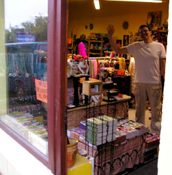 Tento článek obsahově navazuje na článek předchozí. V pořadí druhý stojan jsme instalovali v indickém obchůdku GANGA na Koněvově ulici, v Praze na Žižkově. Málatí déví nám velice ochotně poskytla místo u vchodu do své prodejny, ve které prodává širokou škálu věcí z Indie, jako jsou sárí, vonné tyčinky, apod. Na fotografiích níže je vidět umístění stojanu v prodejně.