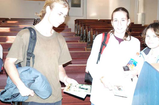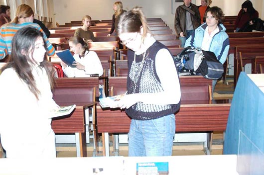 Letos měl navíc každý příchozí student možnost obdržet od programu Šástra dána knihu "Božská příroda" a "Dokonalé otázky, dokonalé odpvědi", což všem udělalo velkou radost. Škola navíc obdržela od programu Šástra dána knihy Bhagavad-Gíta a Mahábhárata. Pan dr. Mácha přislíbil zařazení těchto dvou knih do školní knihovny a také to, že se budou používat v rámci výuky. (Omlouváme se za zhoršenou kvalitu fotografií)