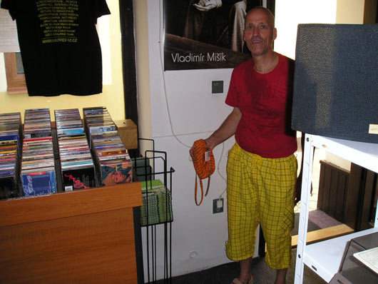 Luděk zná majitele obchůdku již delší dobu. Majitel tohoto CD bazaru také zná oddané Krišny již od dob Beatles, protože byl jejich fanoušek. Byl rád, že může umístit stojan ke vchodu do jeho prodejny a pomoci tak lidem mít blíže ke knihám Šríly Prabhupády. CD-bazar se stojanem na knihy se nachází na hlavní pěší zóně v centru Přerova. O další stojan na knihy je zájem v Ostravě a v dalším „článku o stojanech“ uvedeme podrobnosti.