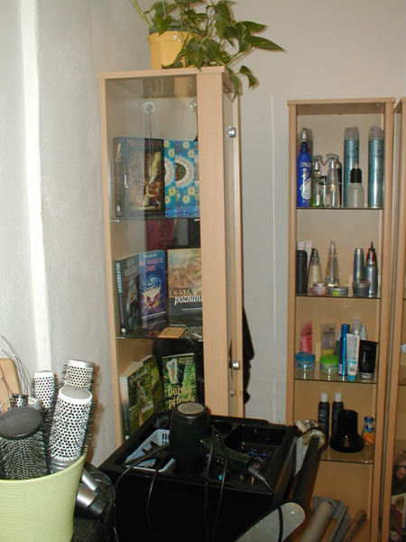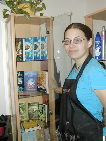 Bhaktin Monika je povoláním kadeřnice, ale toto zaměstnání vykonává pouze dva nebo tři dny v týdnu a zbytek času je zapojena do služby a pomoci na farmě Krišnův Dvůr. Přesto se rozhodla, že v kadeřnictví, kde pracuje, vystaví do skleněné vitrínky namísto drahých kosmetických přípravků knihy Šríly Prabhupády. Ve spolupráci s programem Šástra Dána umístila tyto knihy do skříňky, odkud si je mohou zákazníci půjčit a číst rovnou na místě. Knihy tam jdou pěkně vidět a lákají každého k nahlédnutí. Případné otázky zákazníků zodpovídá bhaktin Monika při práci s jejich účesem, a tak má vždy nějakou příležitost začít rozhovor s duchovní tématikou. Navíc namísto rádia pouští Monika zákazníkům Mahámantru a celou atmosféru kadeřnictví zpříjemňuje vůně vonných mahátyčinek. Přejeme Monice mnoho úspěchů v kázání a hodně příznivých zákazníků.