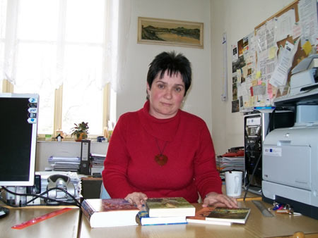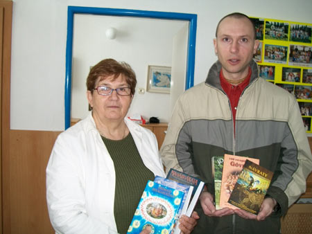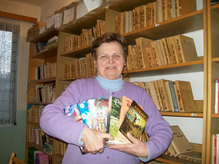Místní knihovna Kondrác, starostka obce přebírá knihy pro místní knihovnu s 30ti čtenáři. Věnováno 5 knih.