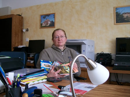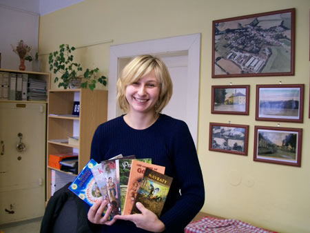 Místní knihovna Heřmaničky, 40 čtenářů, věnováno 6 knih. Tato pracovnice úřadu, která přebírá knihy pro jejich knihovnu navštěvuje s ostatníma naše restaurace v Praze.