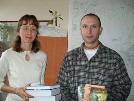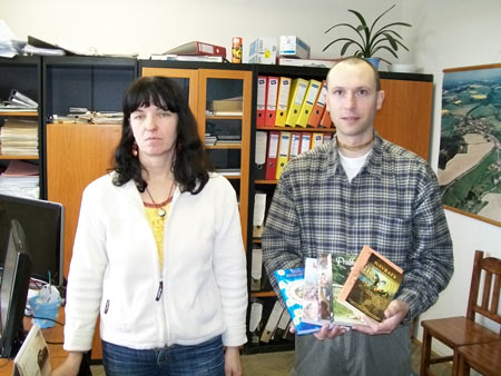 Místní knihovna Trhový Štěpánov, 300 čtenářů, věnováno 8 knih. Někdy se knihovníci neradi fotografují, tak v pozadí alespoň jejich knihovna.