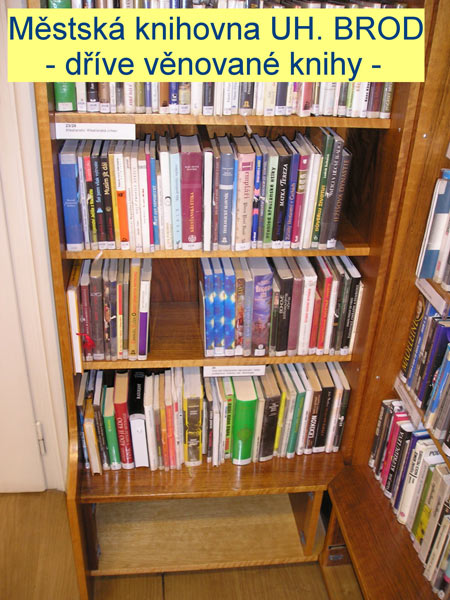 V Městské knihovně Uherský Brod jsme byli už podruhé, ale nikdy neodmítnou zařadit jakékoli námi darované knihy. Bohužel se nám nepodařilo pořídit fotografii z předání, jak tomu bylo před dvěma lety. Zaznamenali jsme ale zařazení dříve věnovaných knih.