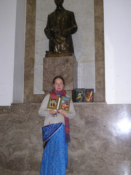 Tentokrát jsme se setkali s paní Demetterowou, která se chtěla sama osobně postarat o předání knih patřičným pracovníkům fakulty a jejich následné zařazení do knihovny. Obdržela od nás pro fakultní knihovnu první i druhý svazek Čaitanja Čaritámrity, dále Mahábháratu a slovenský překlad Rámajány. Z rozhovoru s paní Demetterowou bylo zřejmé, že má přehled o východních filosofiích a jejích písmech. Tudíž naše knihy velmi ocenila a přijala je s velkou radostí. Pokud vyjdou další svazky tohoto díla, nebudeme váhat darovat tyto svazky jejich fakultě.