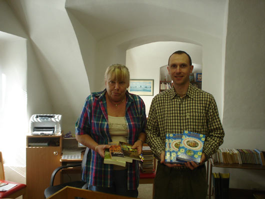 Přikládáme několik fotografií z jeho nedávné distribuce do menších knihoven, ze kterých je vidět, že si dokáže vytvořit s vedoucími vřelý a přátelský vztah.