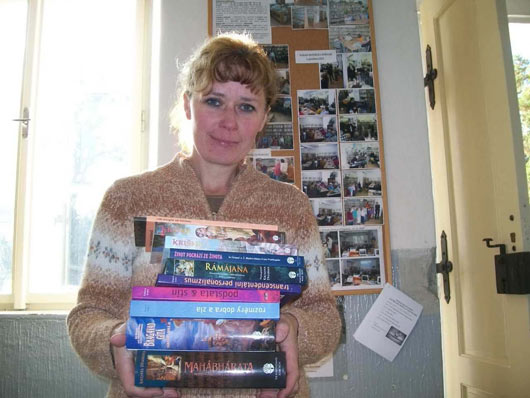 Knihovníci a knihovnice vesnických knihoven přebírají knihy pro své knihovny. Purušotama Kšetra prabhu – hlavní distributor programu Šástra Dána není odrazen, když knihovníky nezastihne v knihovně. Jde za nimi domů a dokonce i do zaměstnání. Jde za nimi k sousedům nebo k přátelům. A pokud nenajde osobu zodpovědnou za knihovnu, tak se na druhý den do vesnice vrátí znovu. Nikdy neopouští vesnici tak, aby její knihovna neměla knihy Šríly Prabhupády.