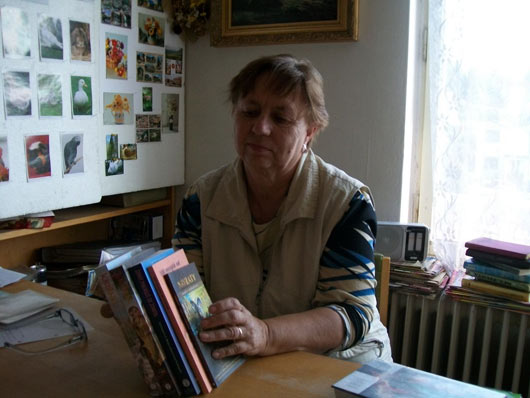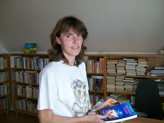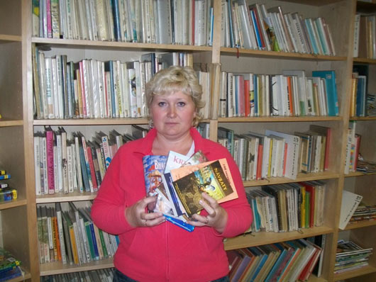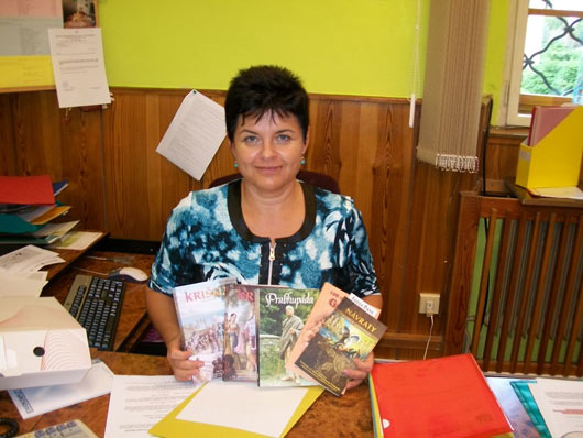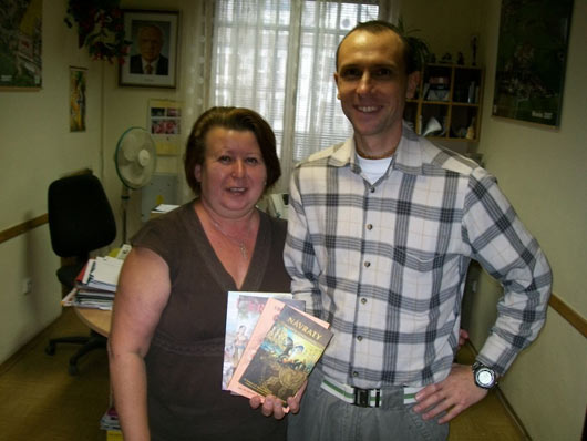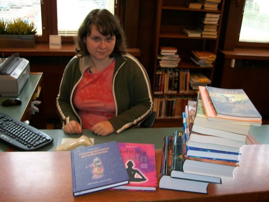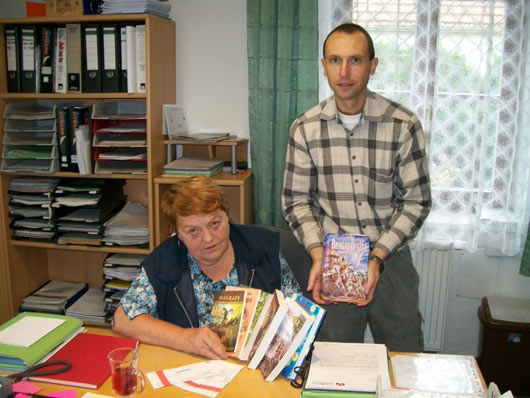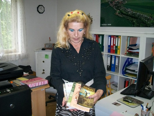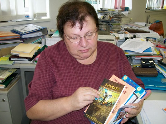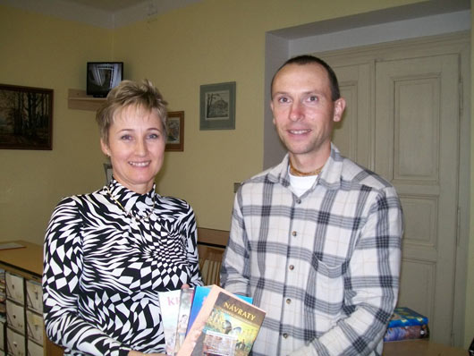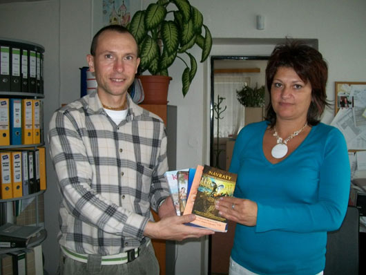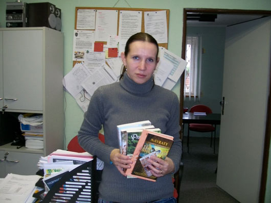 Lázně Toušeň - sekretářka Obecního úřadu přebírá knihy pro knihovnu.