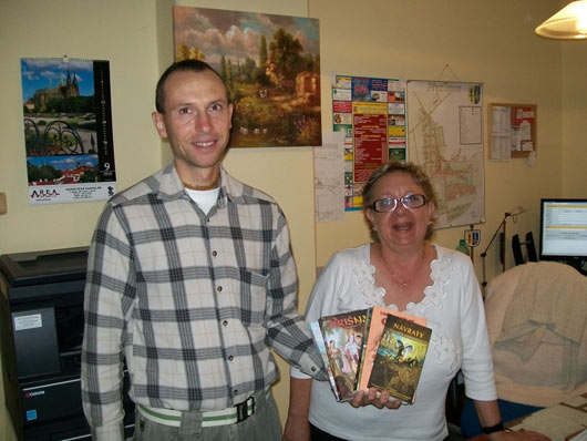 Od září jsme začali distribuovat knihy ve vesnicích a menších městech Prahy východ, a druhou polovinu Prahy východ dokončujeme nyní a během zimy. Setkali jsme se zde opět s pěkným přijetím od vedení obcí, což dokazují fotografie s předáváním knih zástupcům obcí nebo knihovníkům. Mnoho z nich znají hnutí Hare Krišna a zejména naše restaurace v Praze.